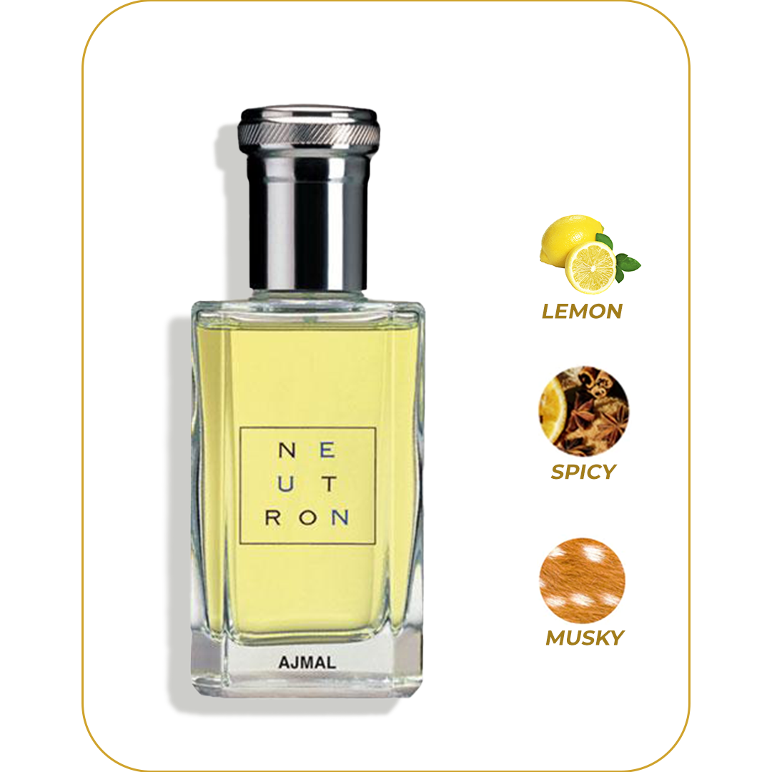 Neutron Perfume for Men by Ajmal Perfume is specially designed for the young, enthusiastic men. A creation to reflect the influential persona of the men. The aromatic fragrance gives you a feel-good factor. Ajmal Neutron is a scent that lends sophistication and mystery to its wearer, no matter the occasion wore.
