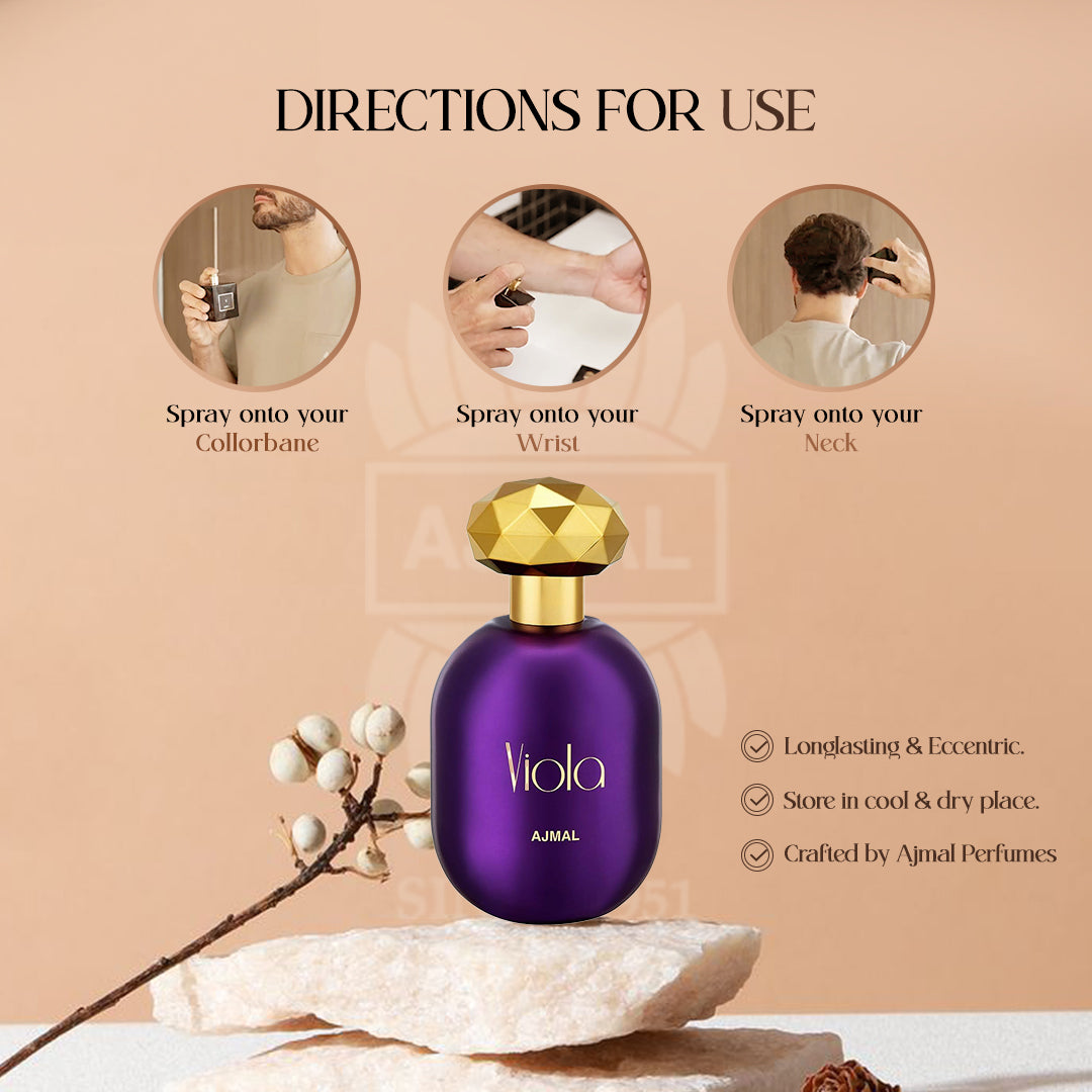 Viola Floral Perfume for Women by Ajmal was launched in 2016. It is crafted for women who want to convey an effortless aura of femininity without being too overpowering. A creation targeted to the millennial girls and encompass all the elements that define the essences of their spirit fresh, vivacious & fun. If you want to achieve your goals and have ultimate confidence in yourself, then this fragrance is the best choice for you.