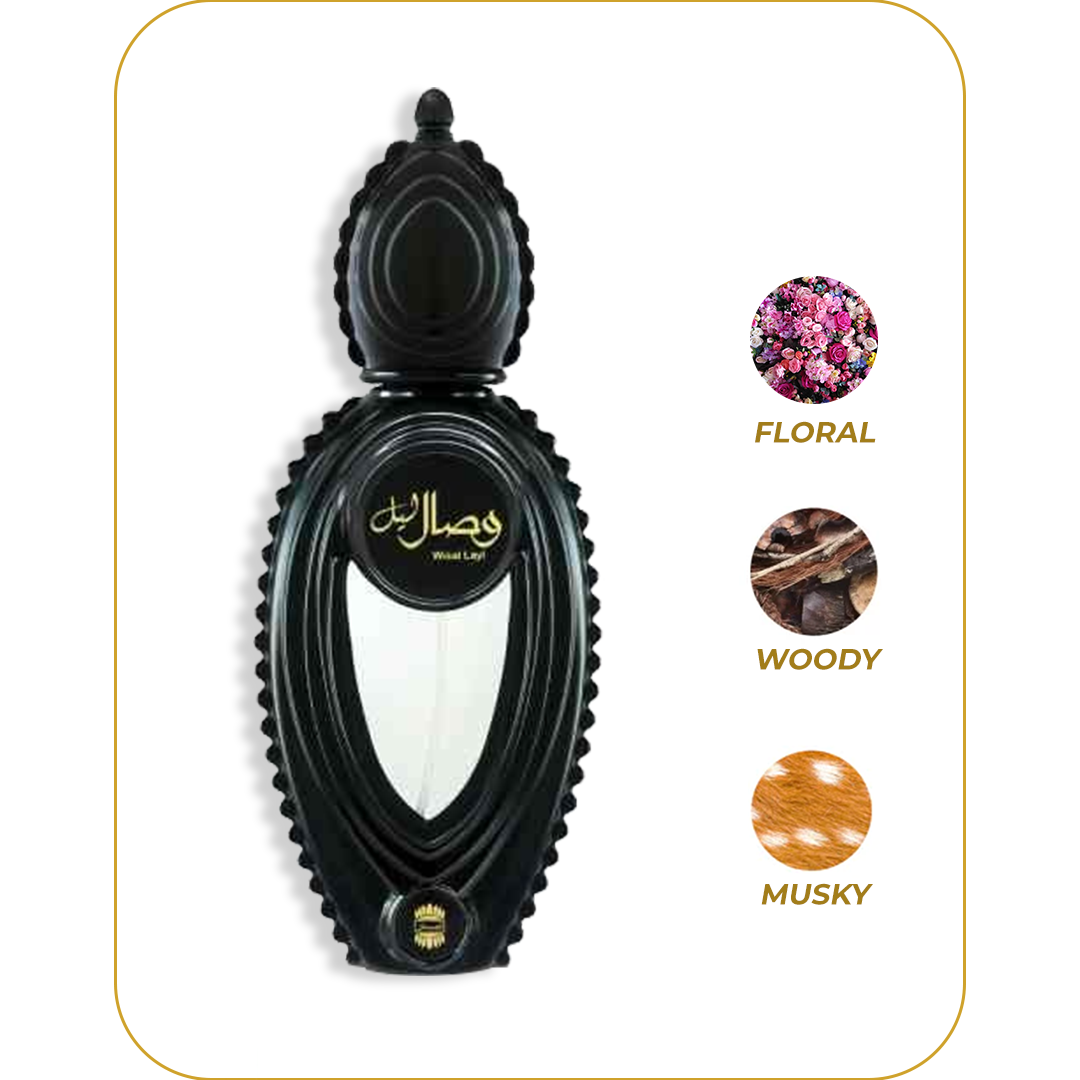 A mesmerizing combination of fruit, flower and oudh. Fruity and floral on the top with Blackcurrant, Apricot and Freesia. At the heart a floral tribute added with woody and leathery tones – with Rose, Osmanthus and Patchouli. Oudhy, balsamic and musky at the base with Oudh Accord, Olibanum and Musk. Wisal Layl – a perfume like no other.
