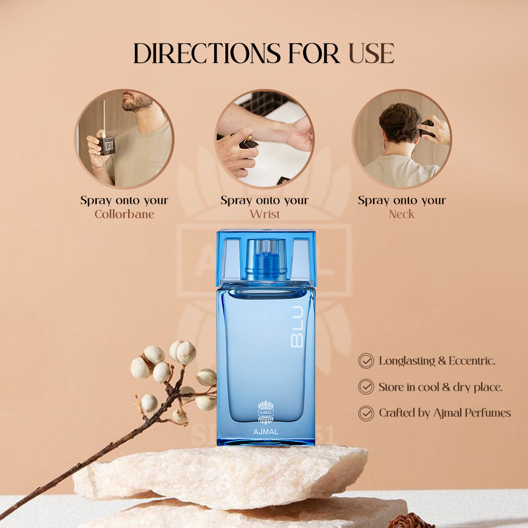 Blu by Ajmal is an alcohol-free fragrance/ perfume oil for Men. A refined and sophisticated French fragrance, this masculine fresh aqueous concentrated perfume oil caters to the contemporary tastes of energetic and spirited young men. Introducing tangy aromas of the summer,