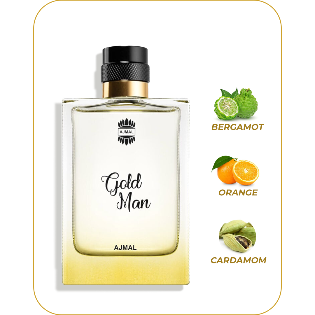 Goldman Cologne for Men by Ajmal is youthful, fresh, and full of vigor. Ajmal Goldman is an uplifting cologne for men that is hard to resist. It opens with a juicy burst of bergamot, mandarin orange, and lemon that is sprinkled with hints of cardamom and cinnamon. Sweet, spicy, and masculine, its complex array of notes tantalize the senses.